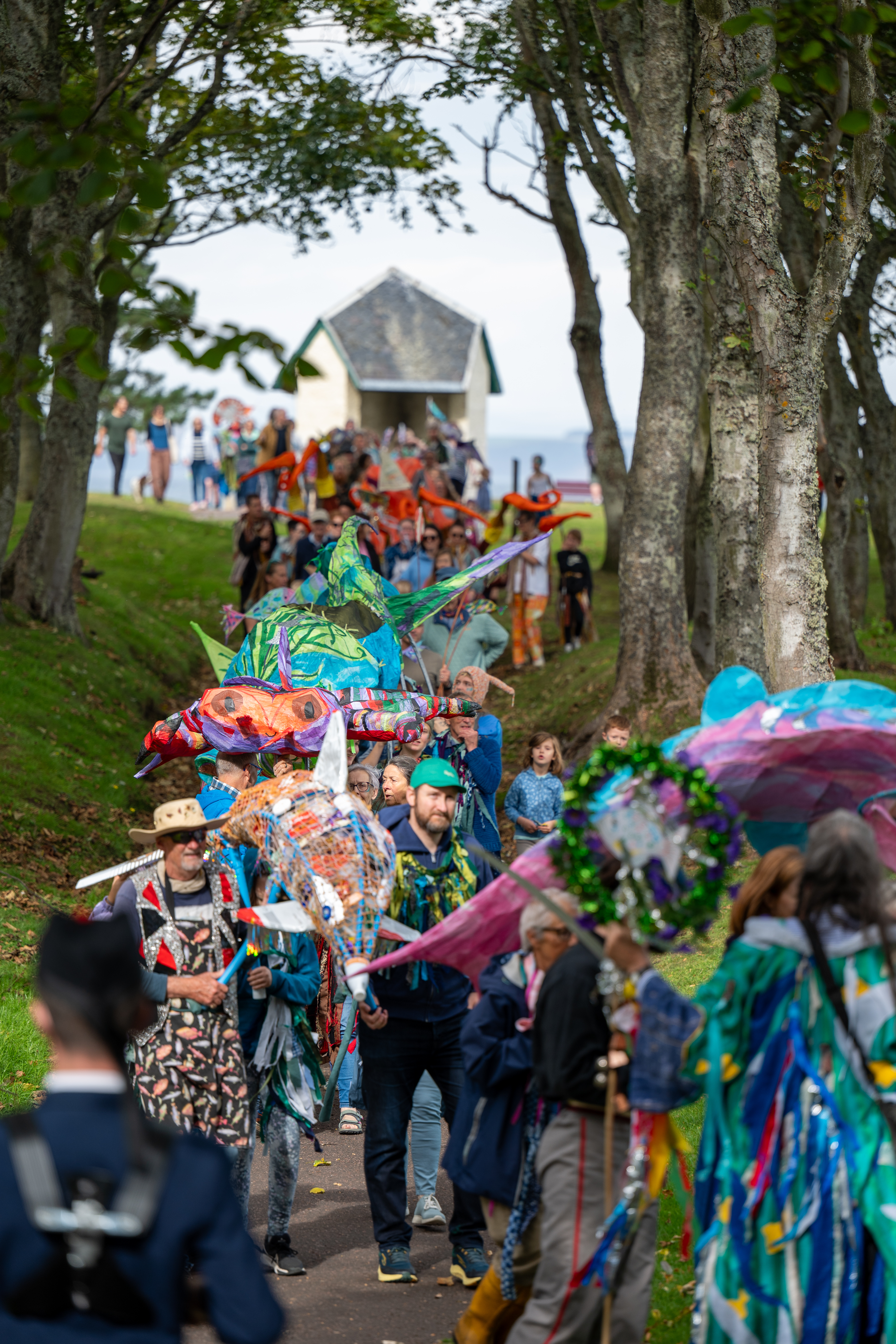 The festival was concluded with a parade titled ‘The Wave’. Thanks to the support from ENCOMM and the dedication of artist Amy Neville from Naturally Useful, the parade was attended by festival goers, local school students and Nairnshire residents from across the local region.